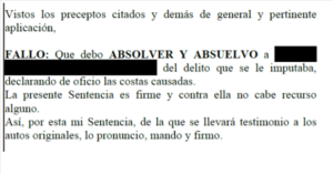 Resultado: sentencia absolutoria firme en el mismo acto del juicio